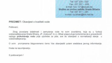 JP “Vodovod” d.o.o. Bihać obavještava i savjetuje korisnike da, iz preventivnih razloga prokuhavaju vodu prije upotrebe za piće.