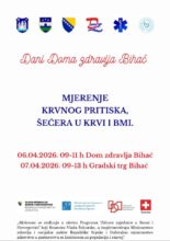 Doma zdravlja Bihać obilježava Svjetski dan zdravlja, te će za građana Bihaća vršiti besplatno mjerenje šećera u krvi i krvnog…
